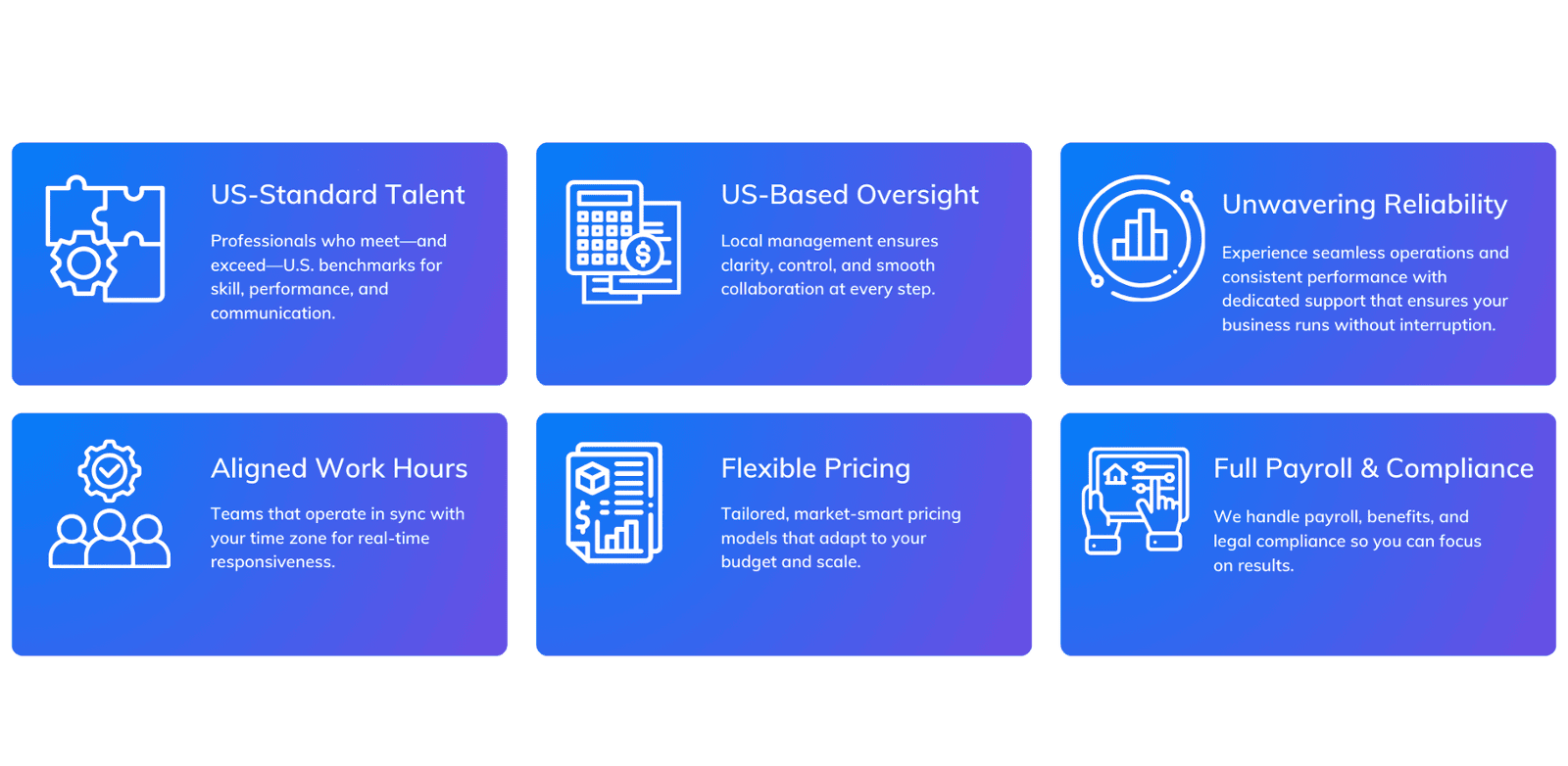 Our teams go beyond staffing to deliver continuous optimization. From strategic onboarding to weekly KPI reports and team coaching, every engagement is wired for accountability and insight.